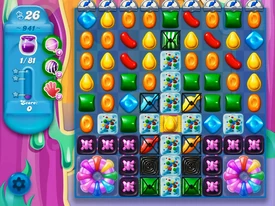 This level has medium difficulty. It really was one of the first games to take the 'match 3' style game from bejewelled and turn it into a 'saga' by including a map and other interlevel fun. Episode level type jelly squares :